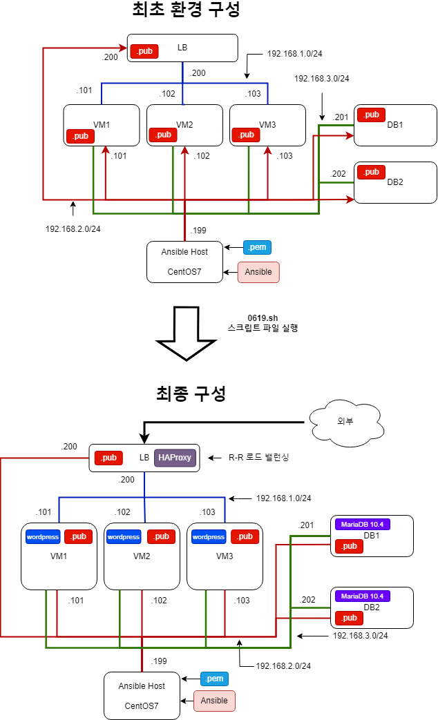 VM1 ~ VM3 사이에 DB1, DB2와 통신할 네트워크를 구성했다.