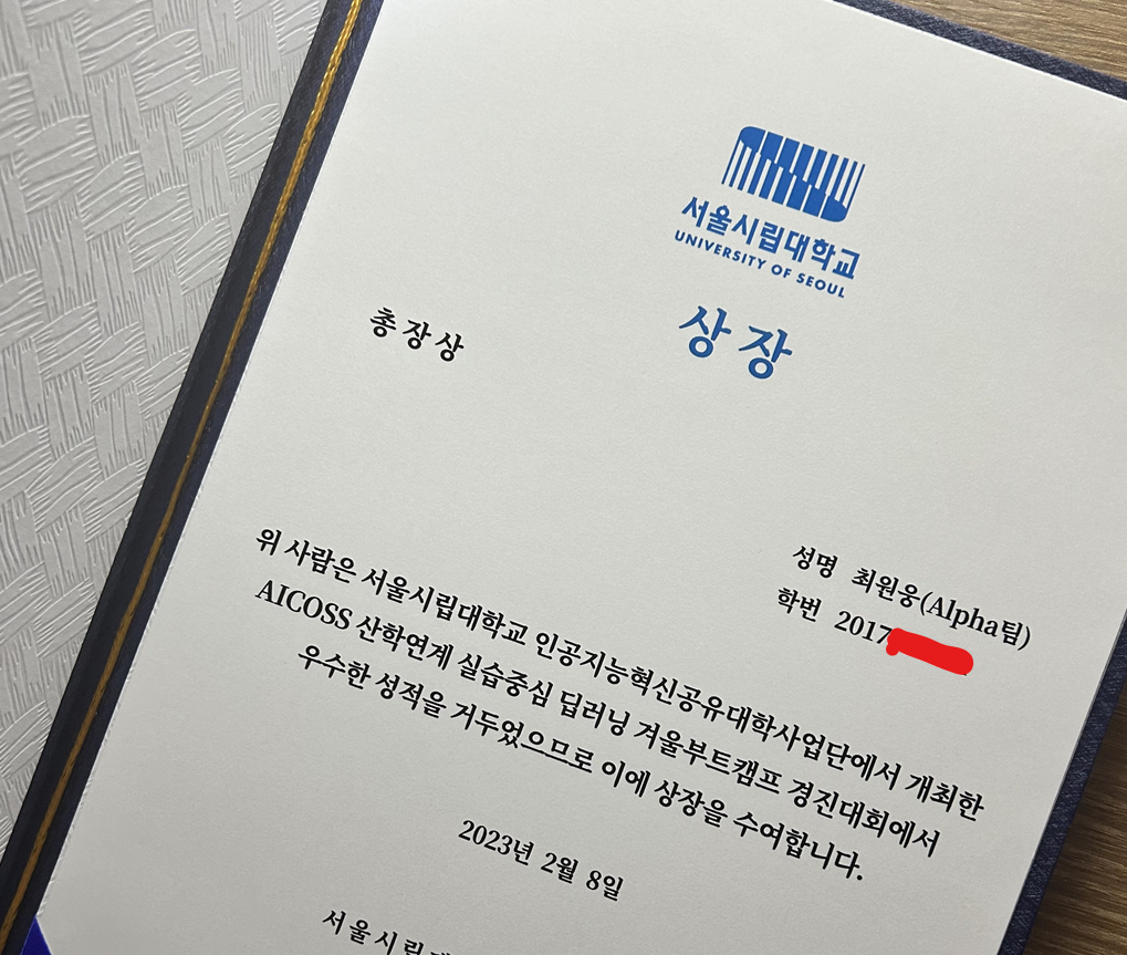 그럼에도 다행히 해당 프로젝트의 결과는 총장상이였고, 대학교 졸업 전에 상을 받아보게 되었다!