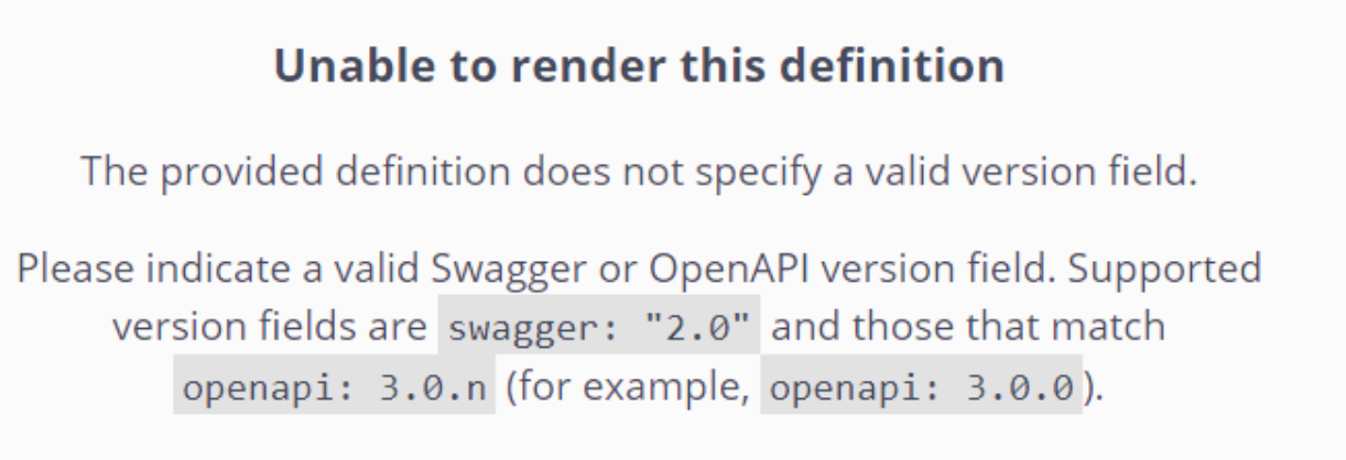 실제로 쿠버네티스 환경에서 배포하고, 도메인 네임으로 접속을 해보니, 이제 Swagger로 넘어가는 듯 했으나, 아래와 같은 렌더링을 할 수 없다는 문구를 제공받았다.