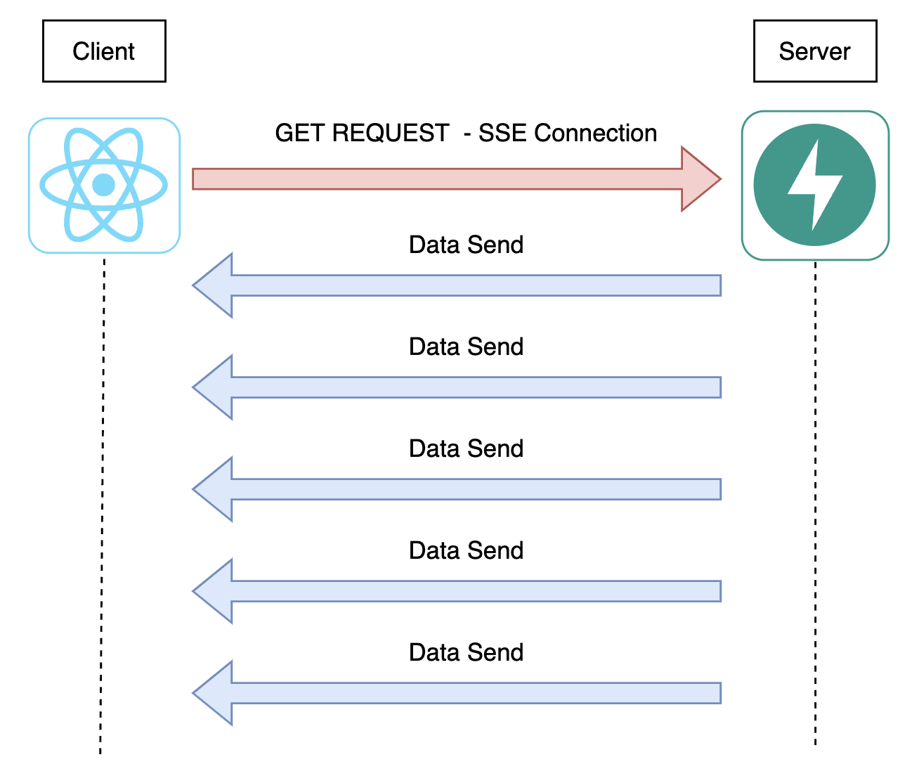 이에 반해, SSE는 기존의 HTTP 프로토콜을 사용하여, 스트림 방식으로 HTTP Response를 서버에서 클라이언트로 데이터를 비동기적으로 푸쉬할 수 있다.