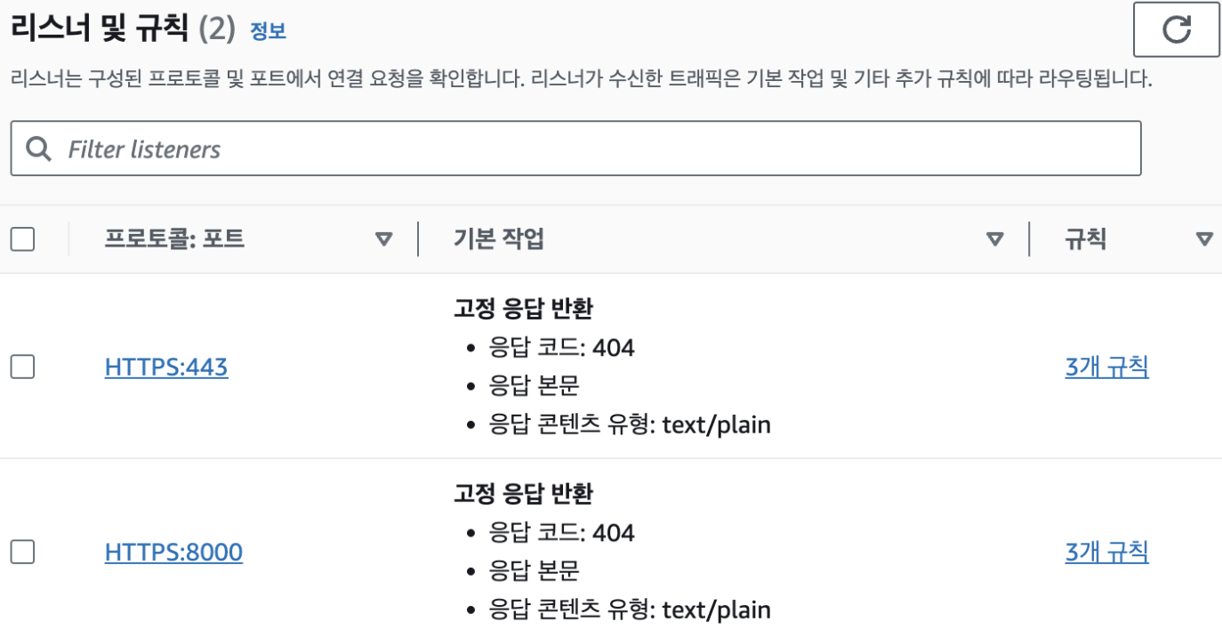 HTTPS 구성을 추가적으로 진행했기 때문에 HTTPS 포트를 리스너 규칙으로 지정했다.