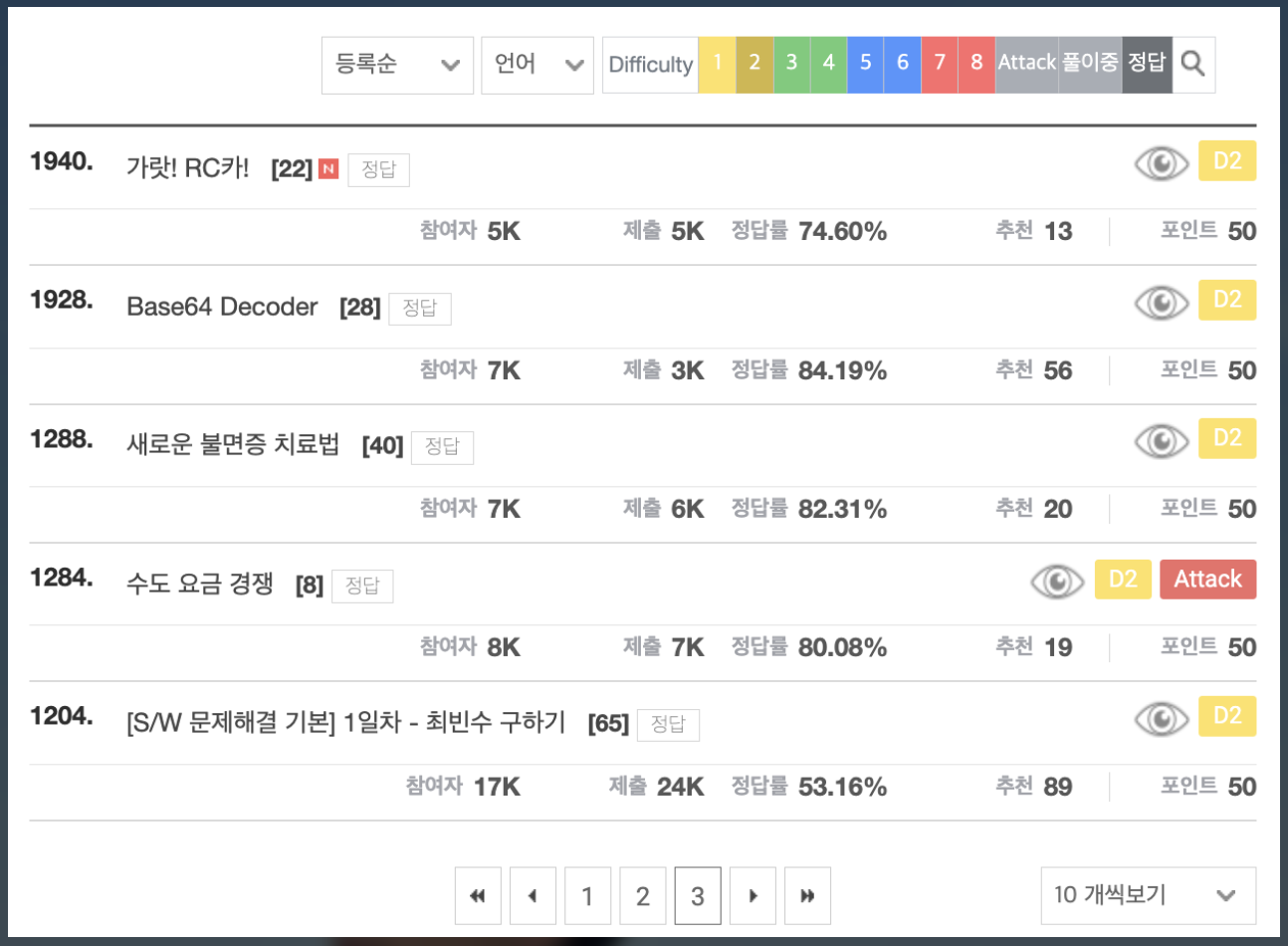 D2를 먼저 건드리자는 생각으로 하루에 꾸준히 3문제정도는 풀었는데, 오늘부로 D2 문제를 다 풀었다.
