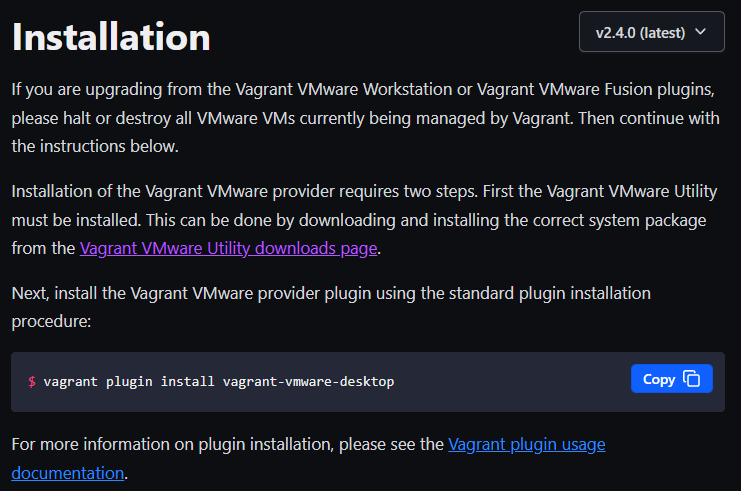 Vagrant VMware Utility를 필수적으로 설치하고나서 Vagrant VMware provisider plugin을 설치해야한다는 사실을 확인할 수 있었다.