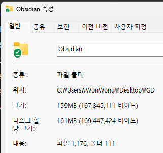 약 3달간 사용한 옵시디언 Vault의 사용량은 다음과 같다.