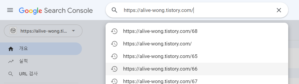 아무튼, 구글 서치 콘솔에서 블로그 주소를 맨 위에 붙여넣으면,