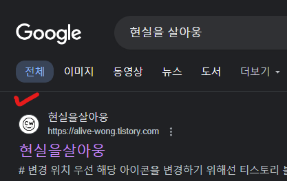 사실 네이버도 반영시키고 싶었는데, 시간이 더 걸리는건지 네이버는 제대로 잡히지 않는 것 같다. 애초에 티스토리 아이콘도 보이지 않았어서,,