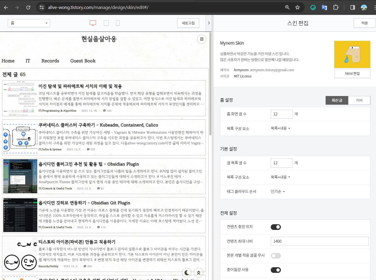 본인은 미넴 스킨을 사용중이기 때문에 각자 설정한 블로그 스킨에 따라 달라질 수 있다.