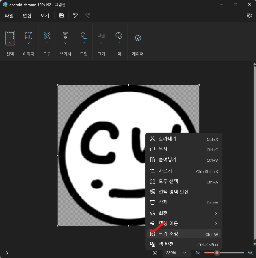 우선 처음 그렸었던 파비콘을 48 x 48px 크기보다 크게 만들고, 아래와 같이 그림판에서 불러와 크기 조정을 수행했다.
