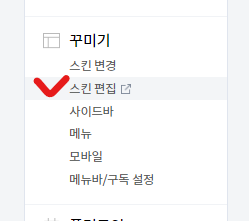 이는 블로그 관리 페이지에서 꾸미기 > 스킨 편집에 들어가면 스킨 세부 설정을 할 수 있는 페이지에 들어온다.