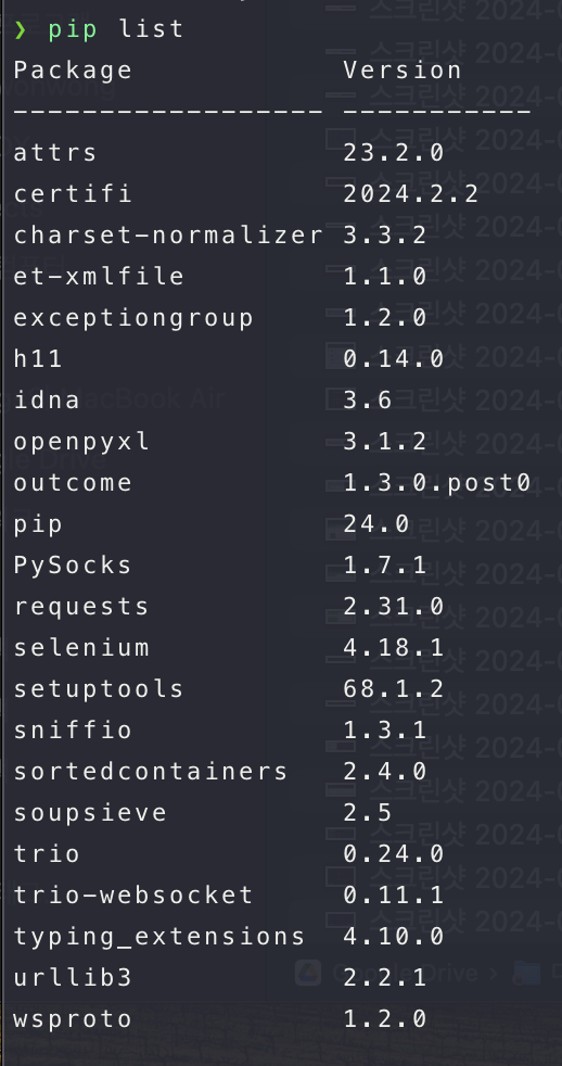 이 과정에서 chrome driver에 대한 악성 코드 의심 알림창이 발생할 수 있는데, Mac 자체 설정에서 임의로 풀어주었다.