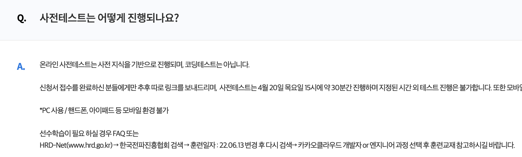 사실 카카오 클라우드 스쿨 1기에서는 사전 테스트를 진행는지에 대해 알고 있지 않아서, 이에 대한 정보가 부족했을 것이라고도 생각한다.