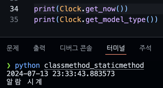 클래스 메소드는 인스턴스 메소드처럼, 첫번째 매개변수로 자신(cls)을 선언해야한다.