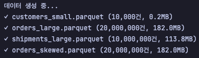 - orders_large.parquet : 20,000,000건, 약 180MB